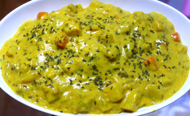 4) 마지막으로 카레가루를 푼 다음 으깬 바나나를 넣어주면 고소한 바나나 우유 카레 완성입니다.