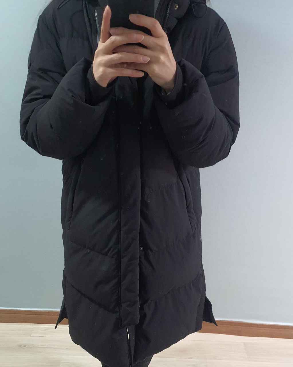 그리고 다 돌아간 후 꺼내보니 벌써부터 이렇게 빵빵한 롱 패딩의 모습을 보실 수 있는데요.