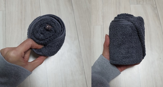 4) 그다음 수건을 돌돌 말아주세요.