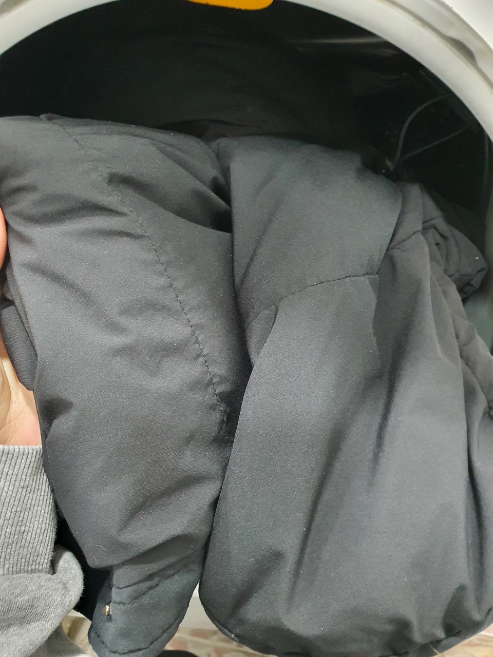 그리고 다 돌아간 후 꺼내보니 벌써부터 이렇게 빵빵한 롱 패딩의 모습을 보실 수 있는데요.
