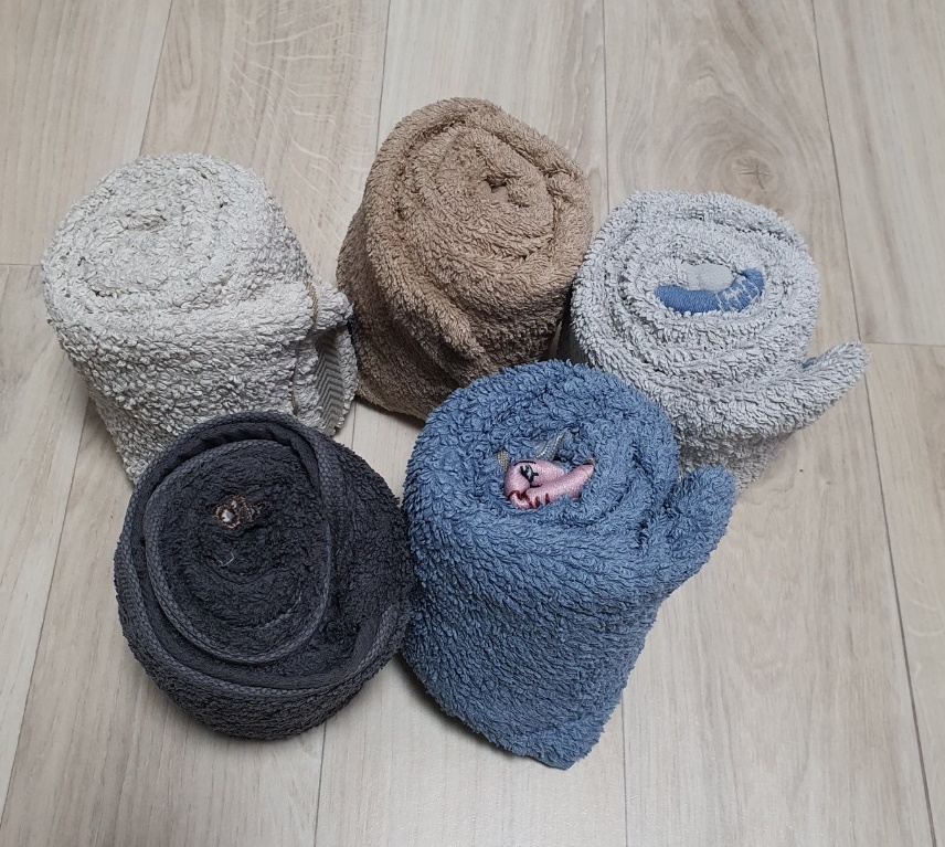 5) 그리고 마지막 남는 부분을 수건 속에 넣어 공을 만들어주세요. 똑같이 5개의 수건을 만들어줍니다.