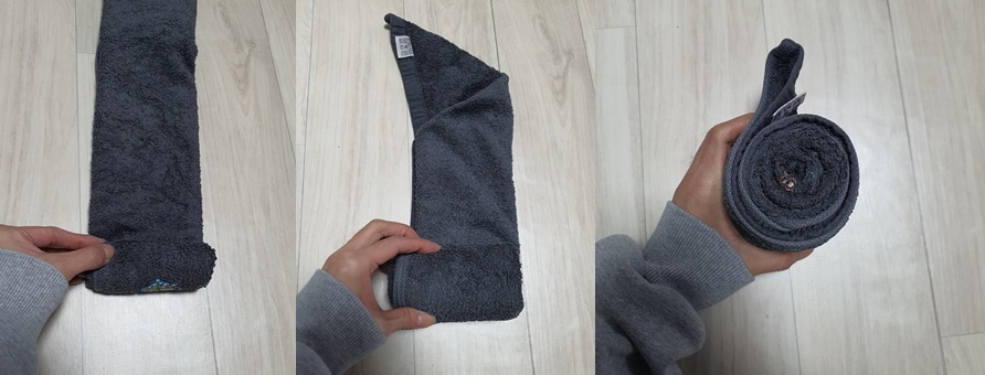 4) 그다음 수건을 돌돌 말아주세요.