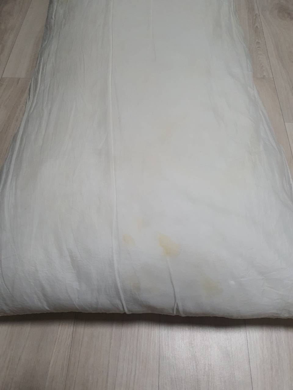 사진으로 보는 것보다 실제로 보면 더욱 찌든 때가 심해 누렇게 오염된 베개솜 상태입니다.