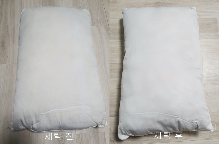 세탁 전과 세탁 후 베개솜의 사진입니다.
