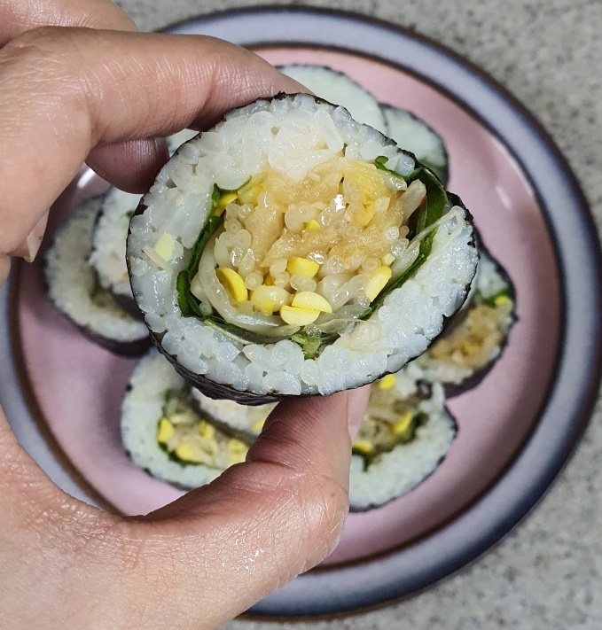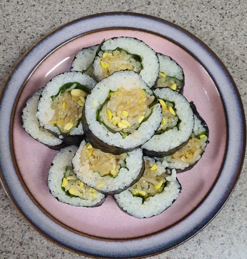 먹다 남은 콩나물 무침을 사용하셔서 김밥을 만들어도 매우 훌륭한 한 끼입니다.