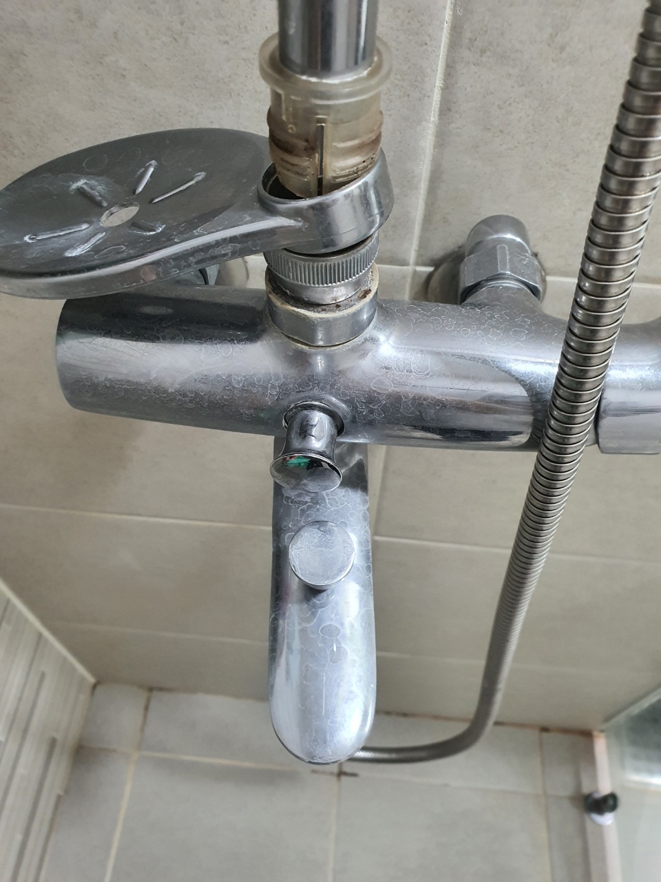 물때가 낀 수도꼭지에 만물상 욕실 청소액을 뿌린 후 닦아내기만 했는데도 이렇게 말끔히 얼룩이 지워졌습니다.^^