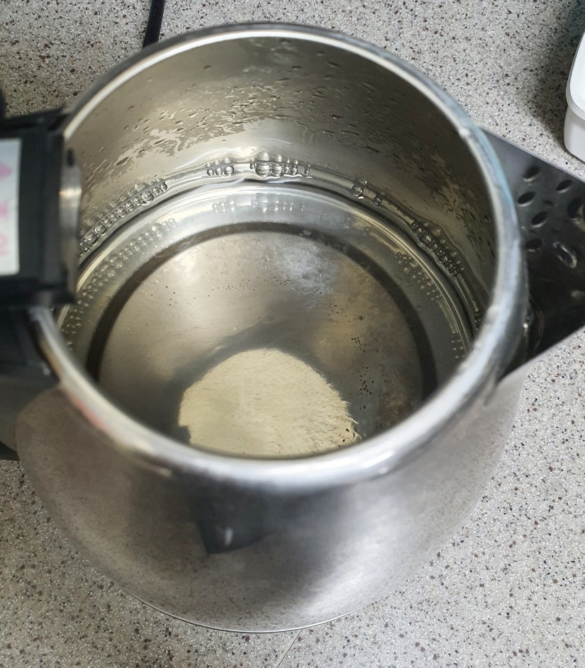 이렇게 식초를 전기포터에 종이컵 두 컵 가량 부어주고요~