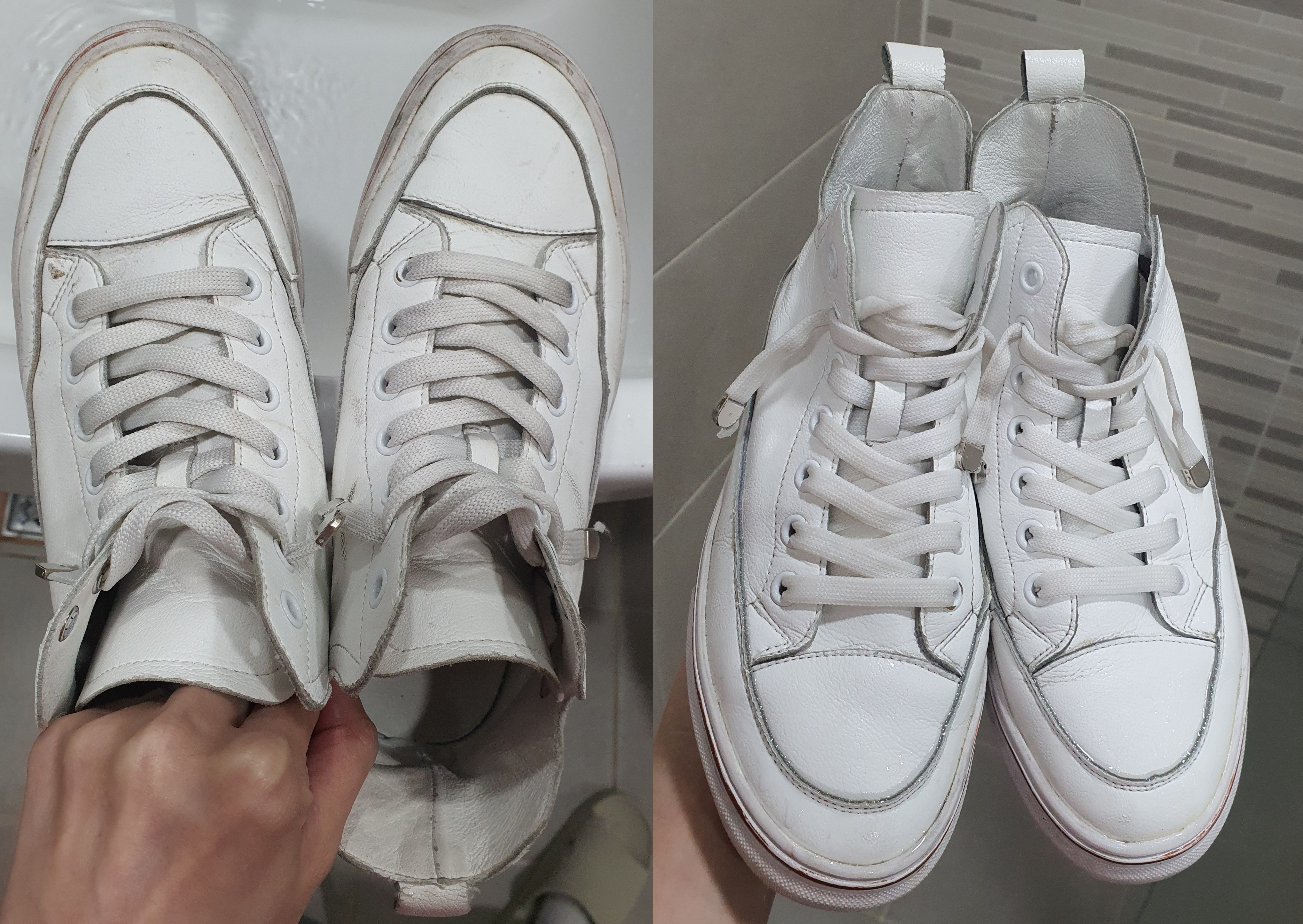 왼쪽은 세탁 전이고 오른쪽은 세탁소 사장님께 배운 대로 세탁한 후입니다. 매우 깨끗해졌죠?