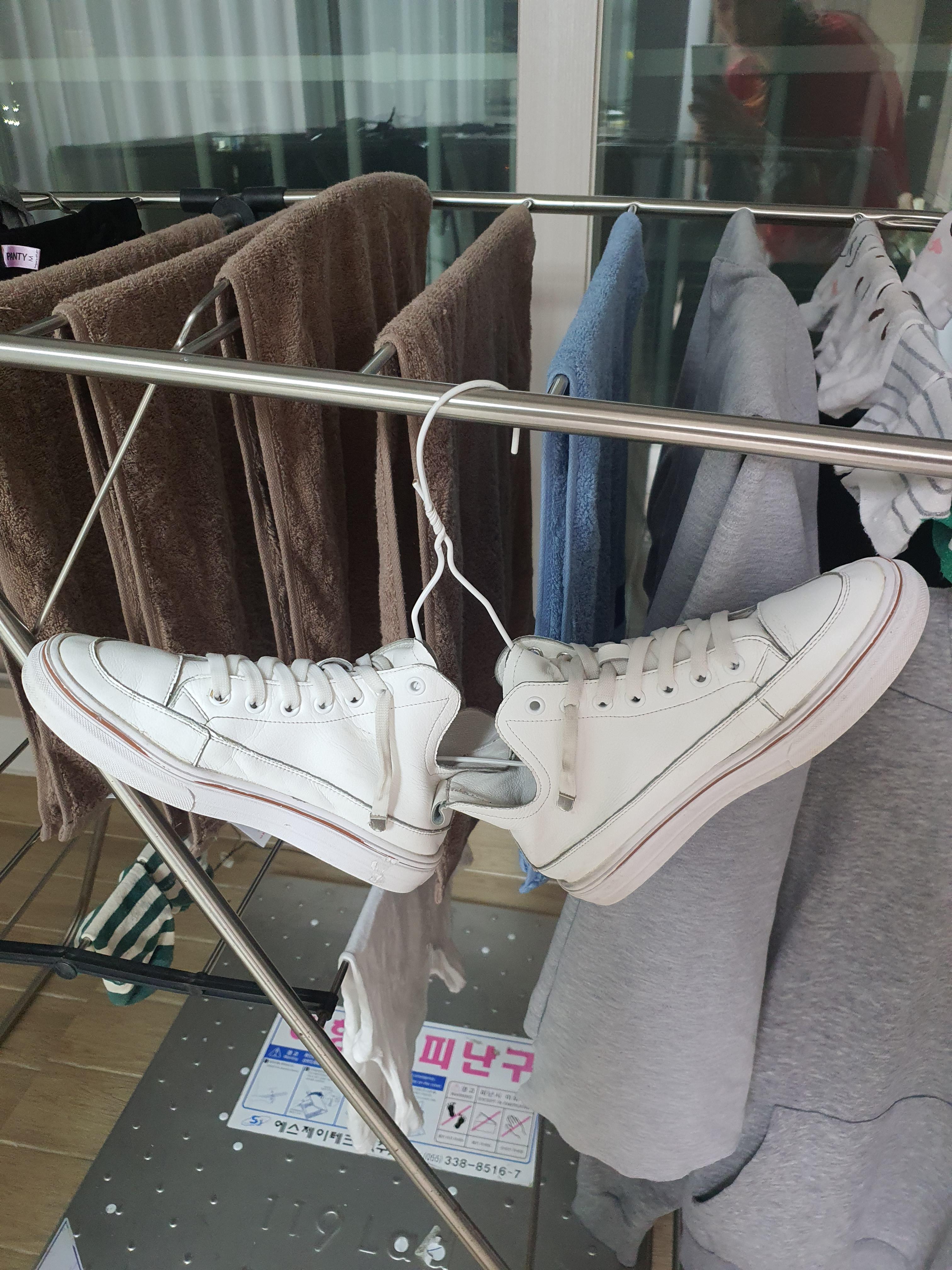 그리고 수건으로 최대한 물기를 제거해 말려주시면 초간단 세탁소 운동화 세탁입니다.