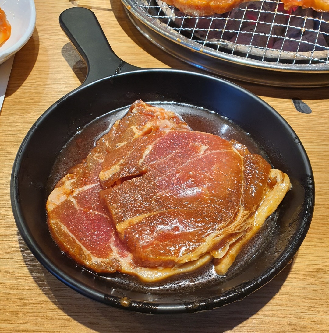 양념이 베인 고기는 끄트머리가 잘 타고 고기를 먹어보면 양념과 육즙이 다 빠져버려 식감이 퍼석퍼석하여 아주 맛이 없습니다.