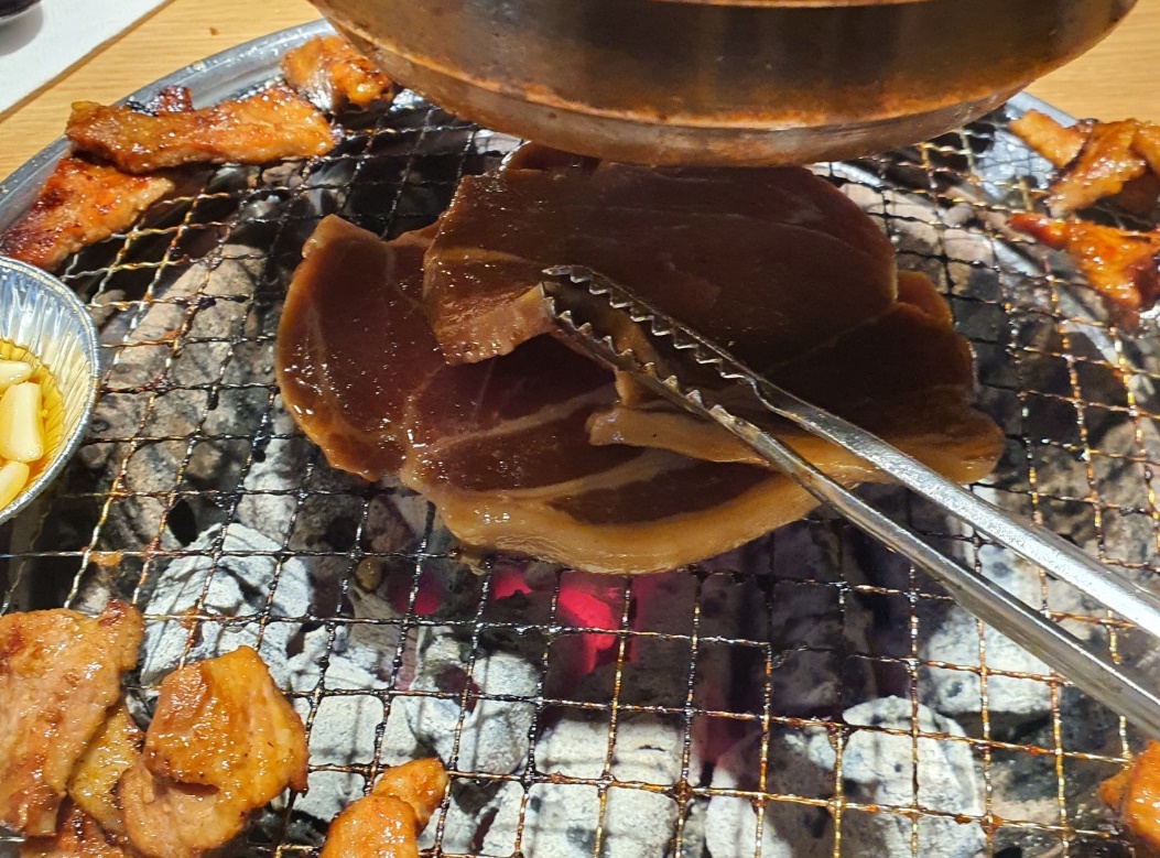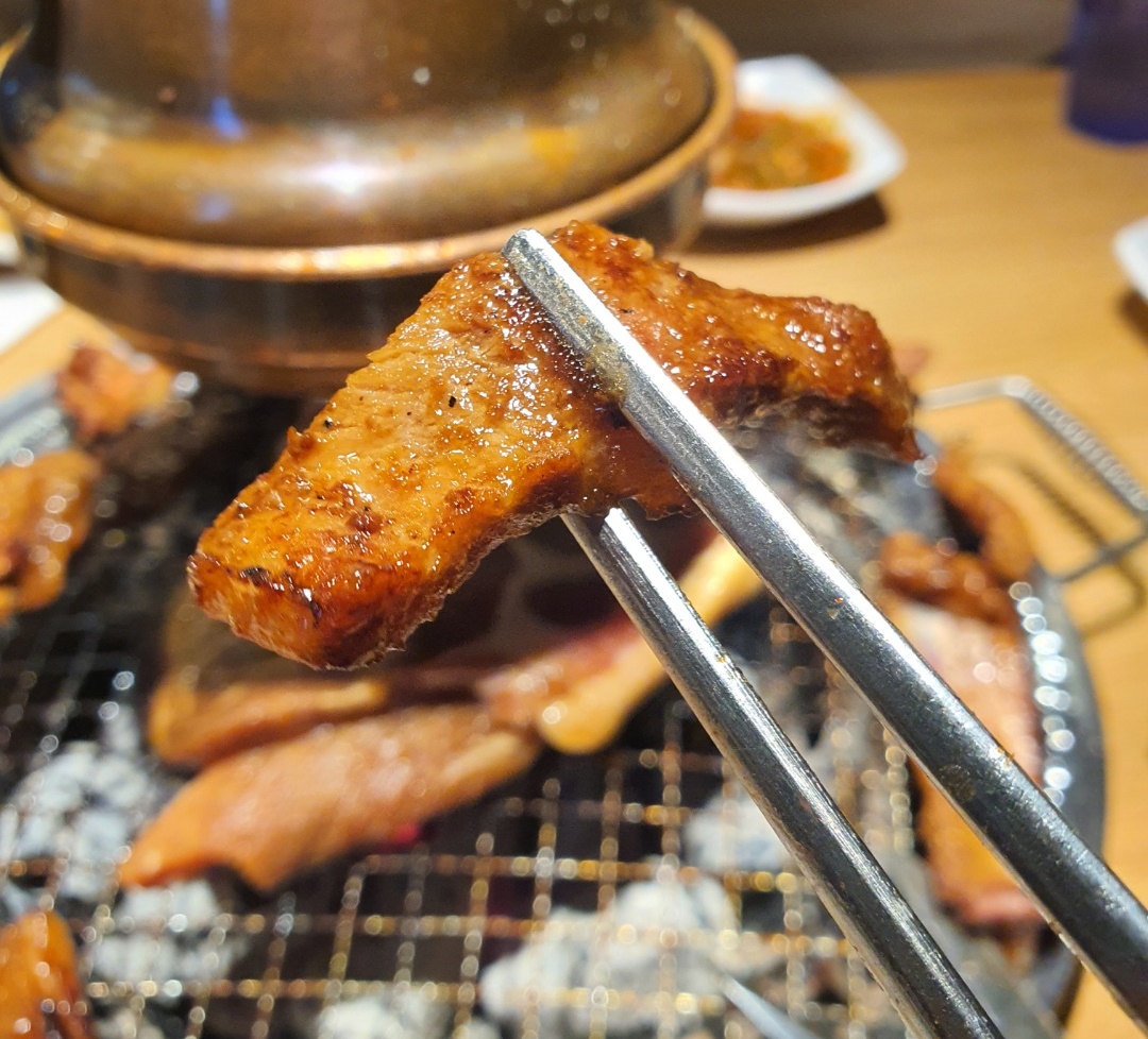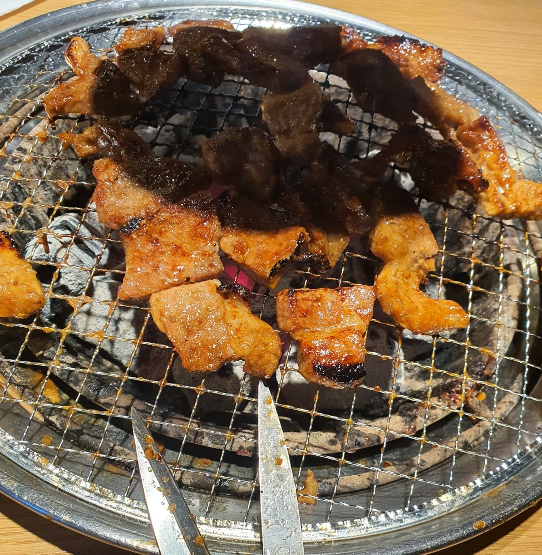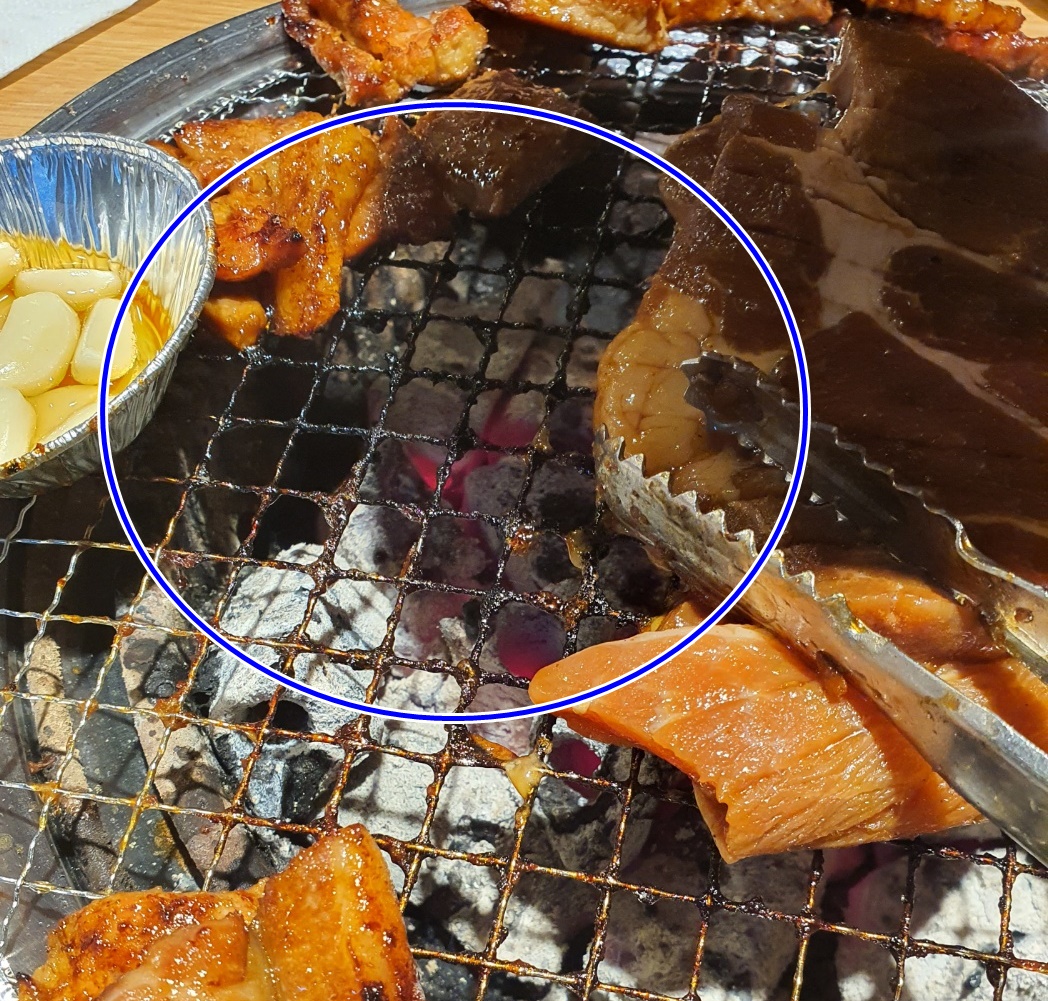 양념이 베인 고기는 끄트머리가 잘 타고 고기를 먹어보면 양념과 육즙이 다 빠져버려 식감이 퍼석퍼석하여 아주 맛이 없습니다.