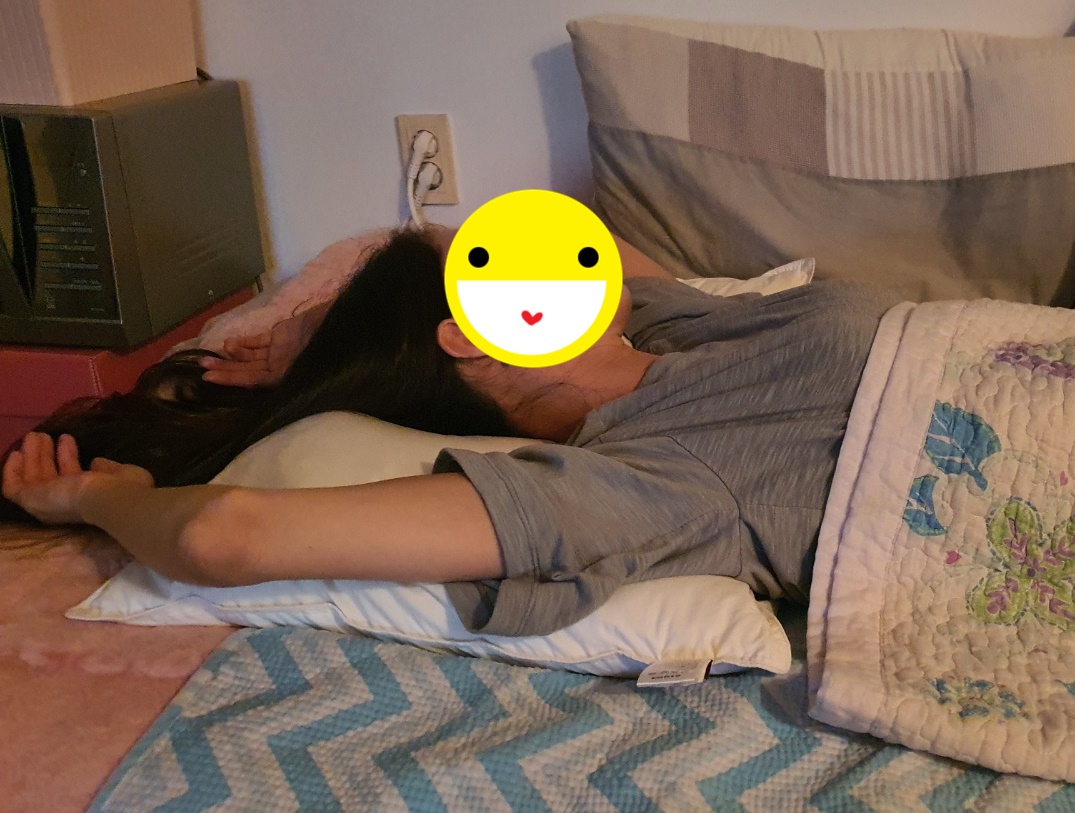 그리고 문제는 베개 베는 방법입니다. 우리는 늘 사진과 같이 베개를 베고 자는데요.
