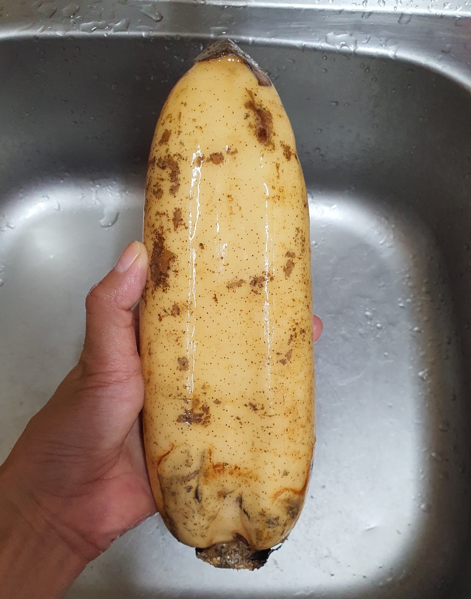 연근은 흐르는 물에 씻어 껍질을 모두 벗겨냅니다.