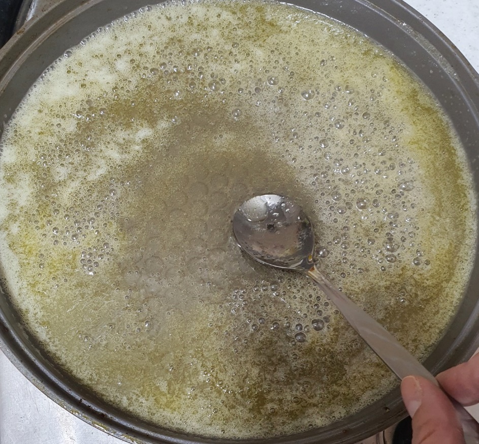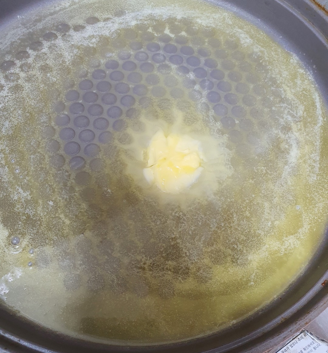 버터가 다 녹으면 물엿이나 요리당을 넣어 단맛을 추가하는데요.