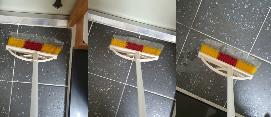 그리고 빗자루로 바닥을 쓸어줍니다.