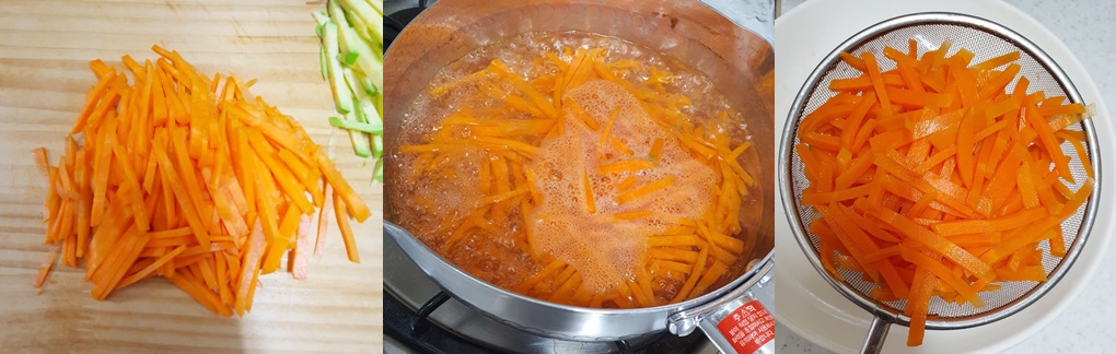 당근은 채 썰어 소금을 약간 넣은 물에 데친 후..