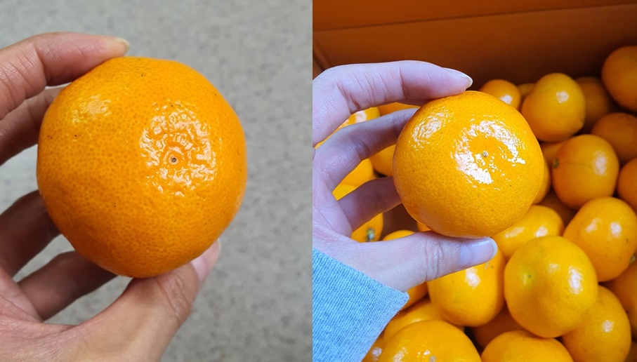 표면이 매끈한 귤보다 울퉁불퉁한 귤이 수분을 조절해 당도가 높아진 일명" 꽃 귤 "이라 불리는 맛있는 귤입니다.
