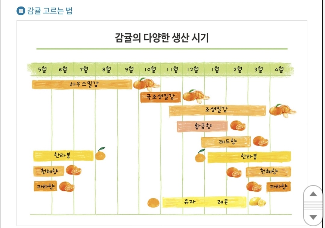 10월에서 11월은 신맛이 강하고 초록빛이 많이 도는 극조생 밀감이 재배가 되고요.