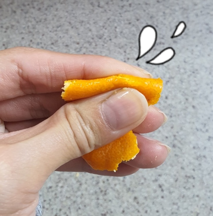 5. 귤껍질을 반으로 접어보아 과즙이 많이 터지는 귤을 선택하세요.