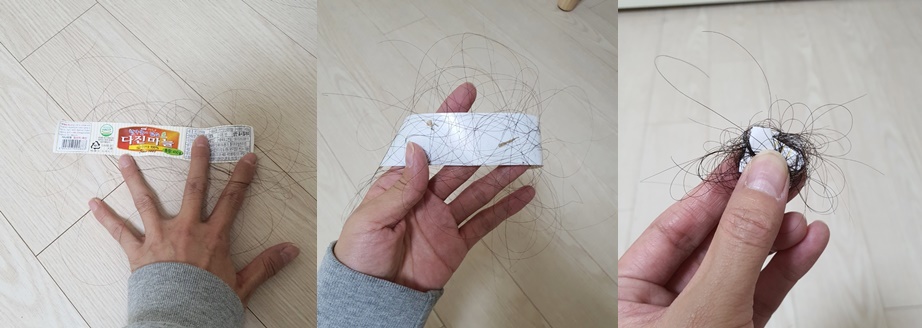 저는 머리카락 청소는 청소기보다 스티커 사용하는 게 더 편하더라고요.