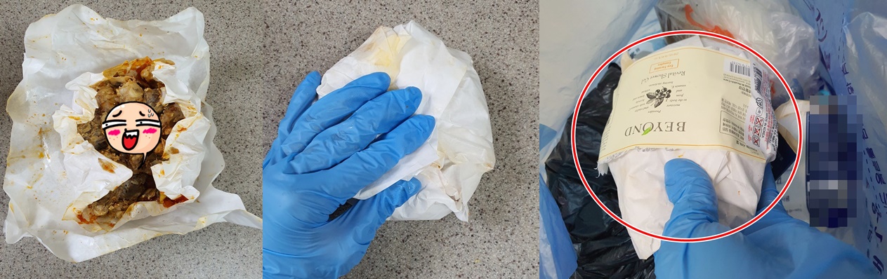 치킨이 담겨 있던 종이 포일이나 박스에 뼈를 모은 다음