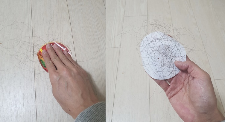 저는 머리카락 청소는 청소기보다 스티커 사용하는 게 더 편하더라고요.