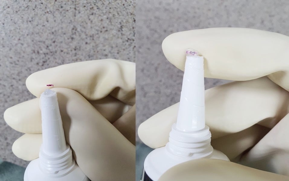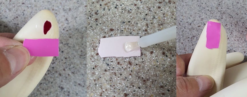 본드는 바로 접착이 되긴 하나 접착면이 딱딱해 피부에 걸리며 다시 구멍이 나기 쉽습니다.
