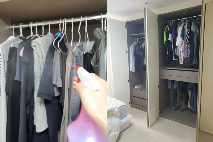 열고 옷을 들춰가며 골고루 탈취제를 뿌려주세요