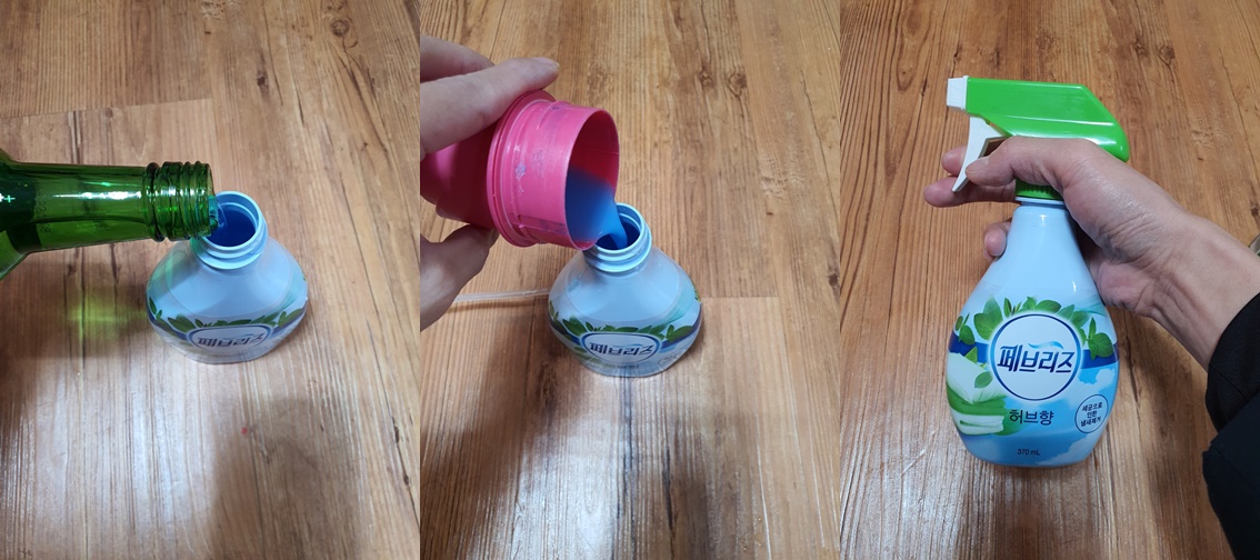 빈 통에 에탄올을 부어주고 향수를 2~3번 뿌려주세요.