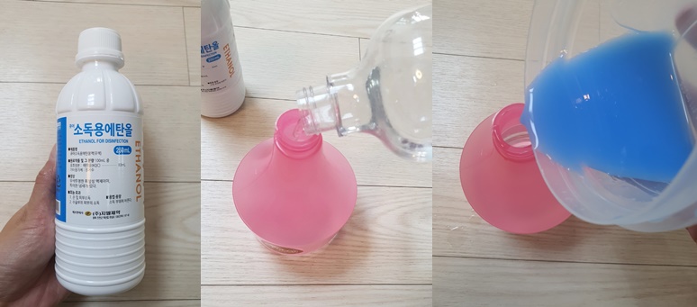 빈 통에 에탄올을 부어주고 향수를 2~3번 뿌려주세요.