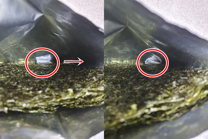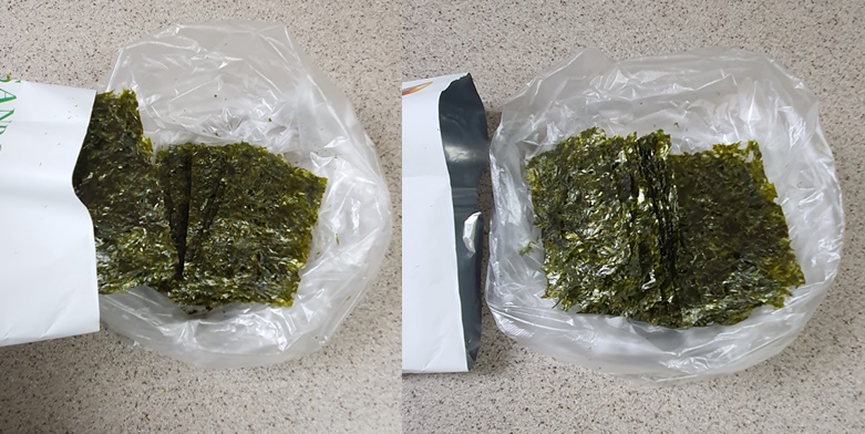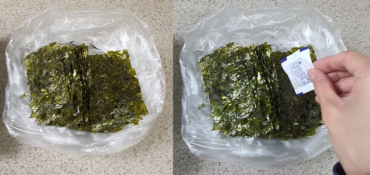 마지막으로 김을 다 썰었다면 제습제를 김에 넣어줍니다.