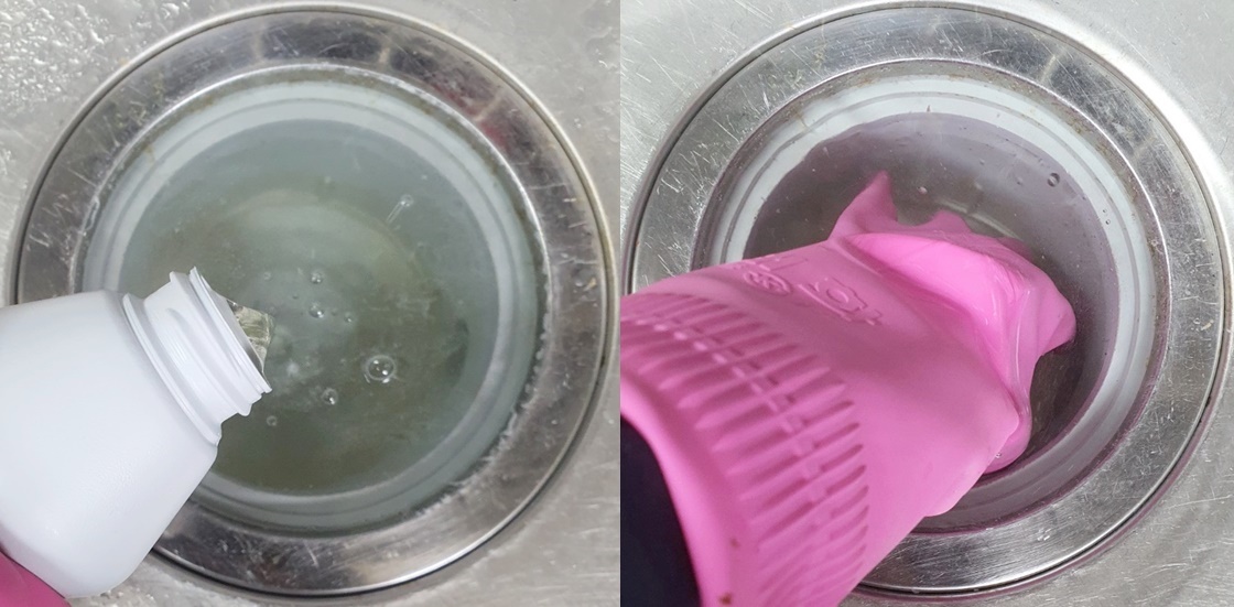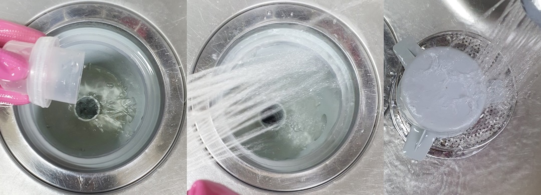 그리고 5분 후 거름망과 하수구 속을 깨끗한 물로 씻어주세요.