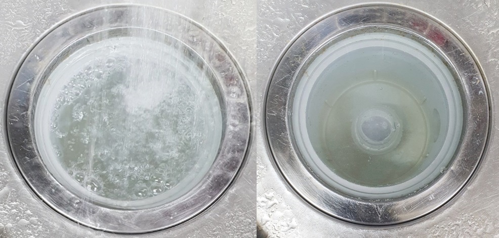 그리고 5분 후 거름망과 하수구 속을 깨끗한 물로 씻어주세요.
