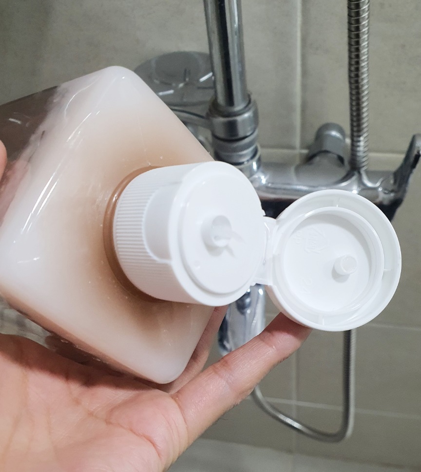 먼저 샴푸 뚜껑을 열어주세요.