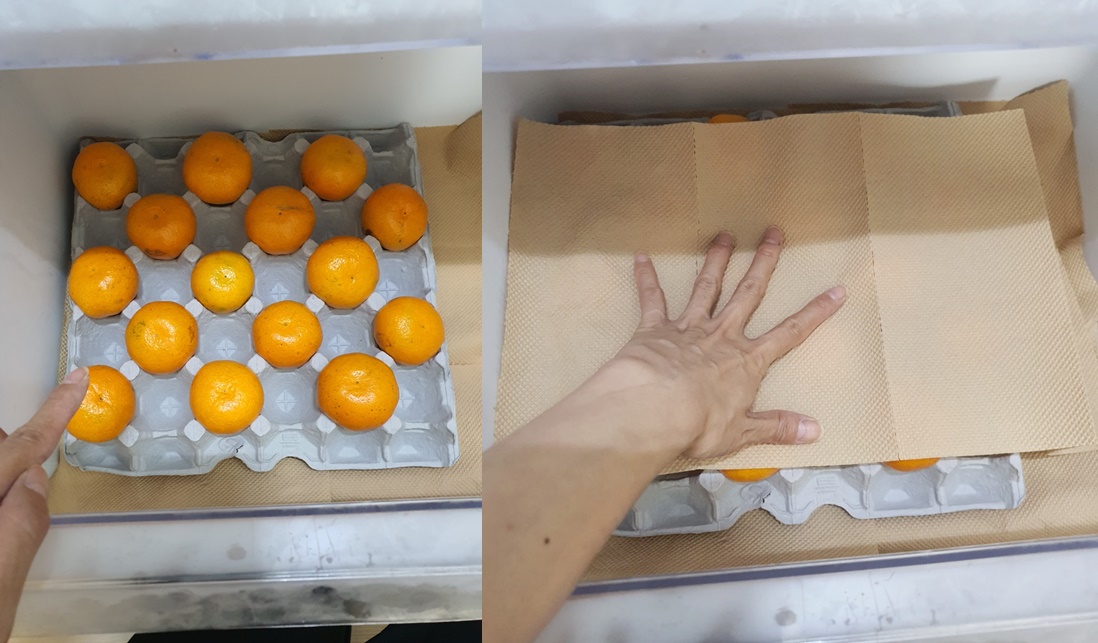 그리고 먼저 먹을 귤은 박스에 보관하시면 되는데요.