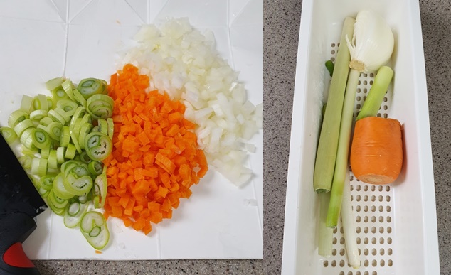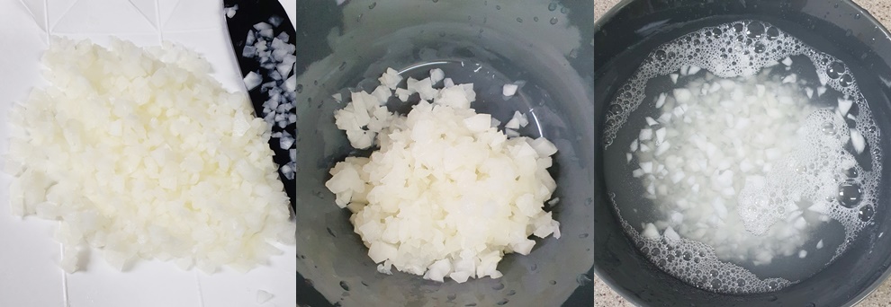 다른 야채를 다지는 동안 물에 잠시 담가주세요.