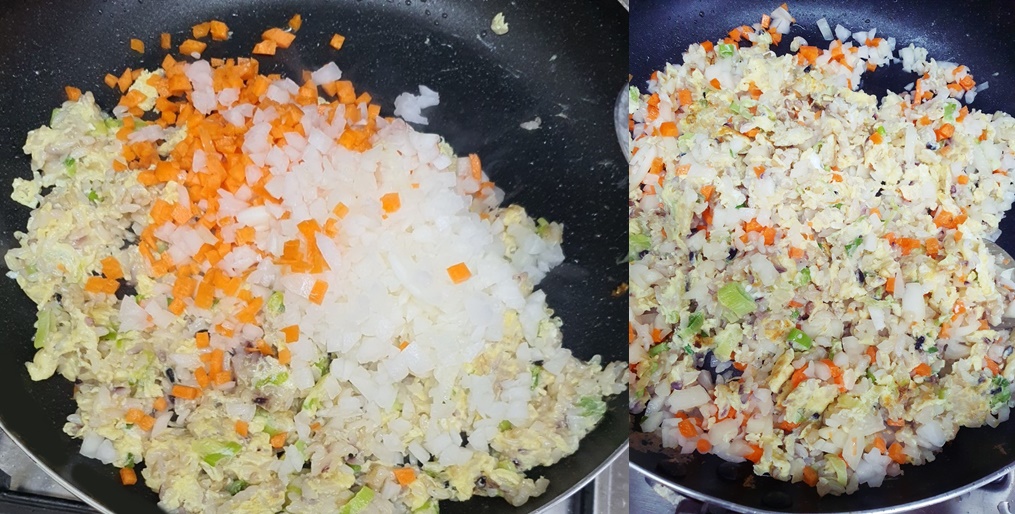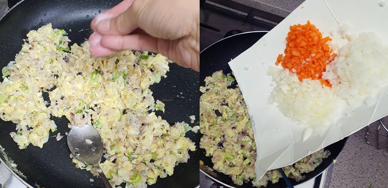 그리고 다져 둔 야채도 밥에 넣어