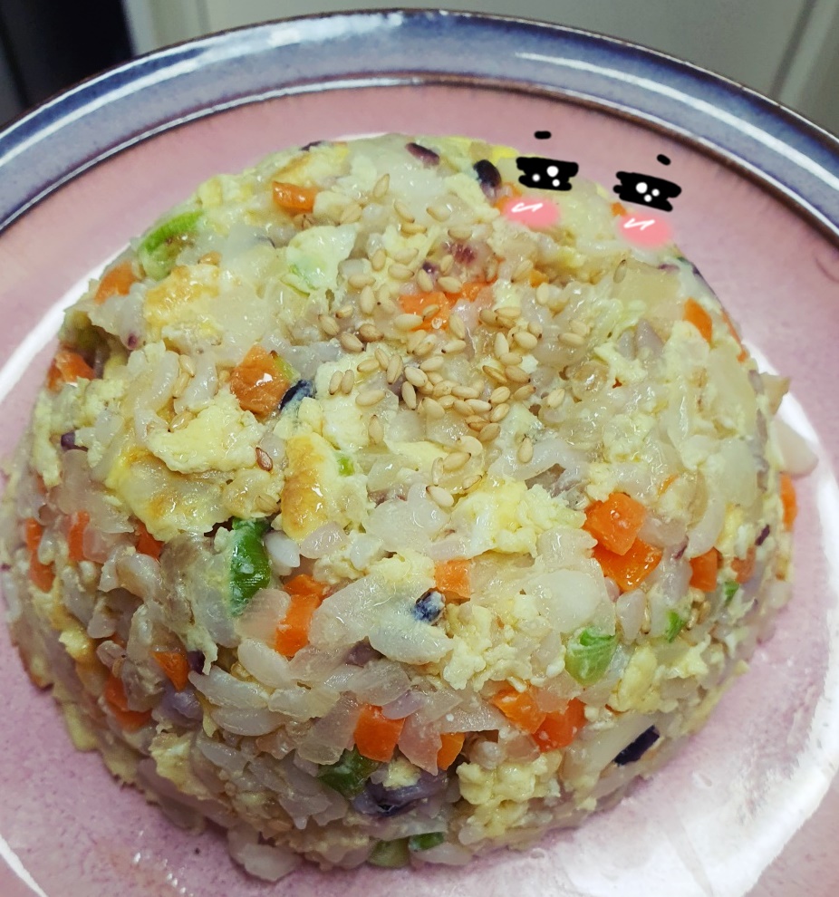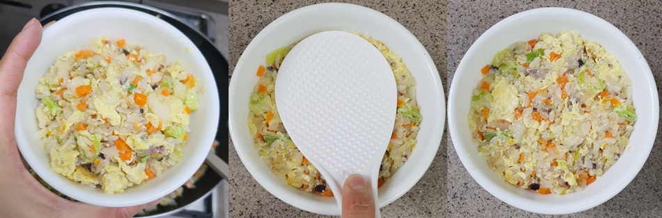 그리고 공기를 들어주면 예쁜 볶음밥이 완성되었어요^^