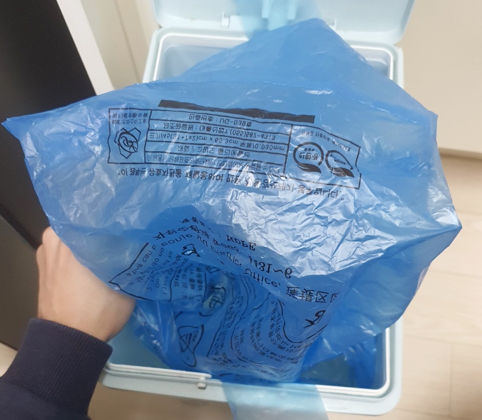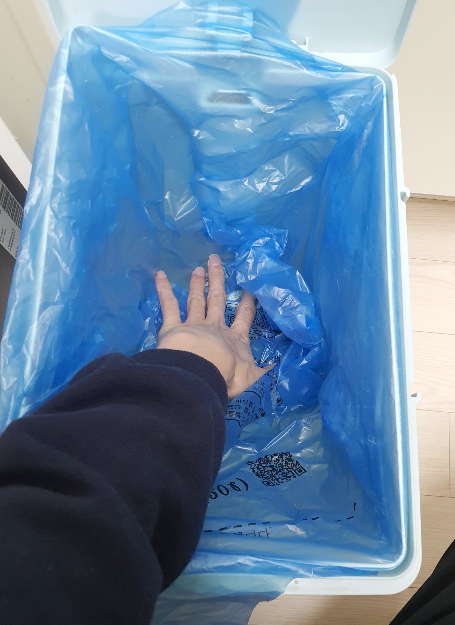 그럼 쓰레기통에 비닐 씌울 때