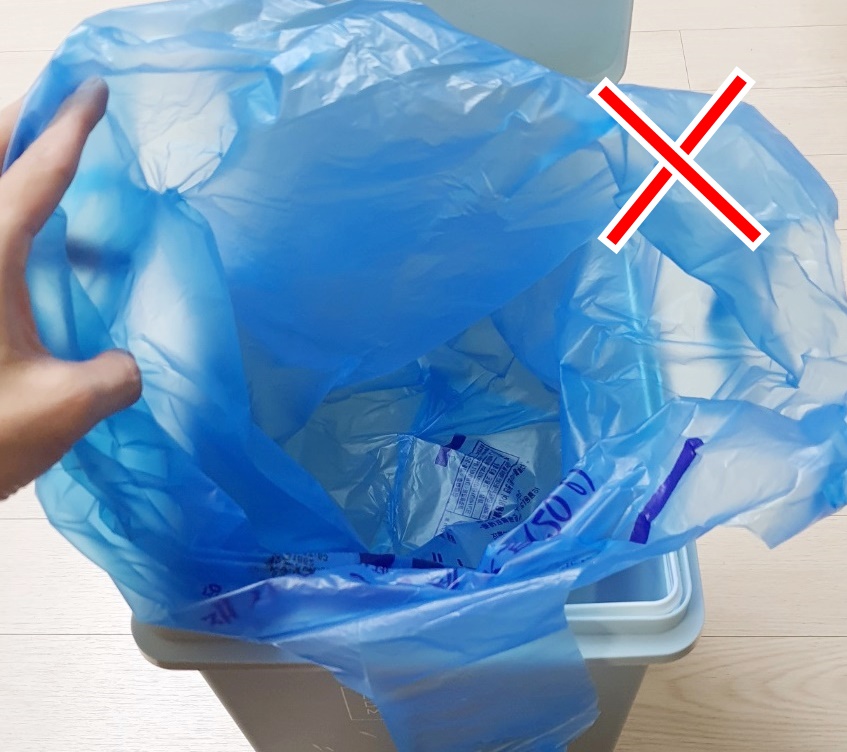 그럼 쓰레기통에 비닐 씌울 때