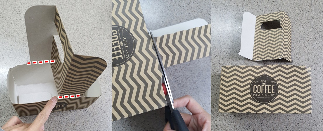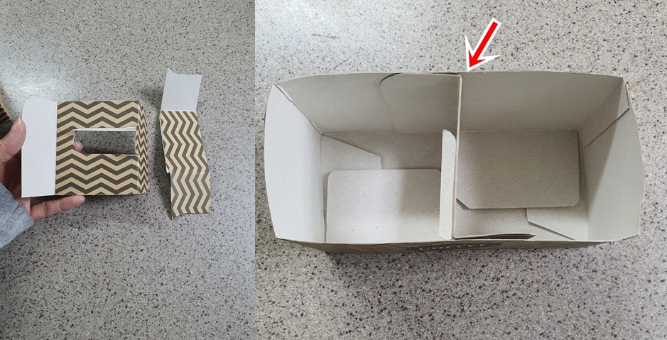 그리고 자른 손잡이를 박스에 넣어