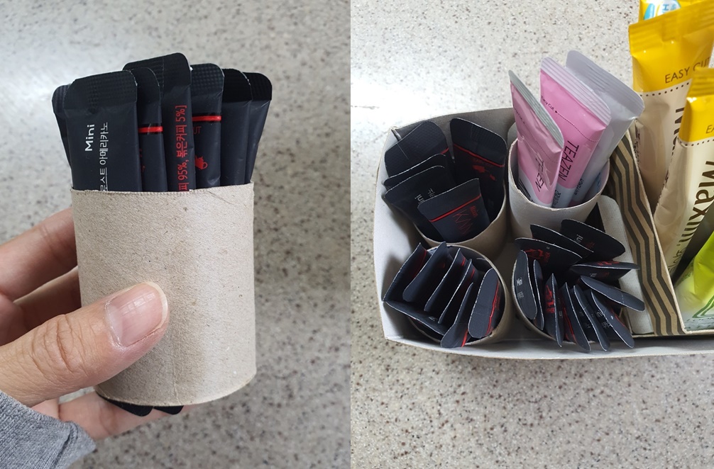 다 쓴 화장심에 커피를 담아 차곡차곡 정리해 주었어요^^