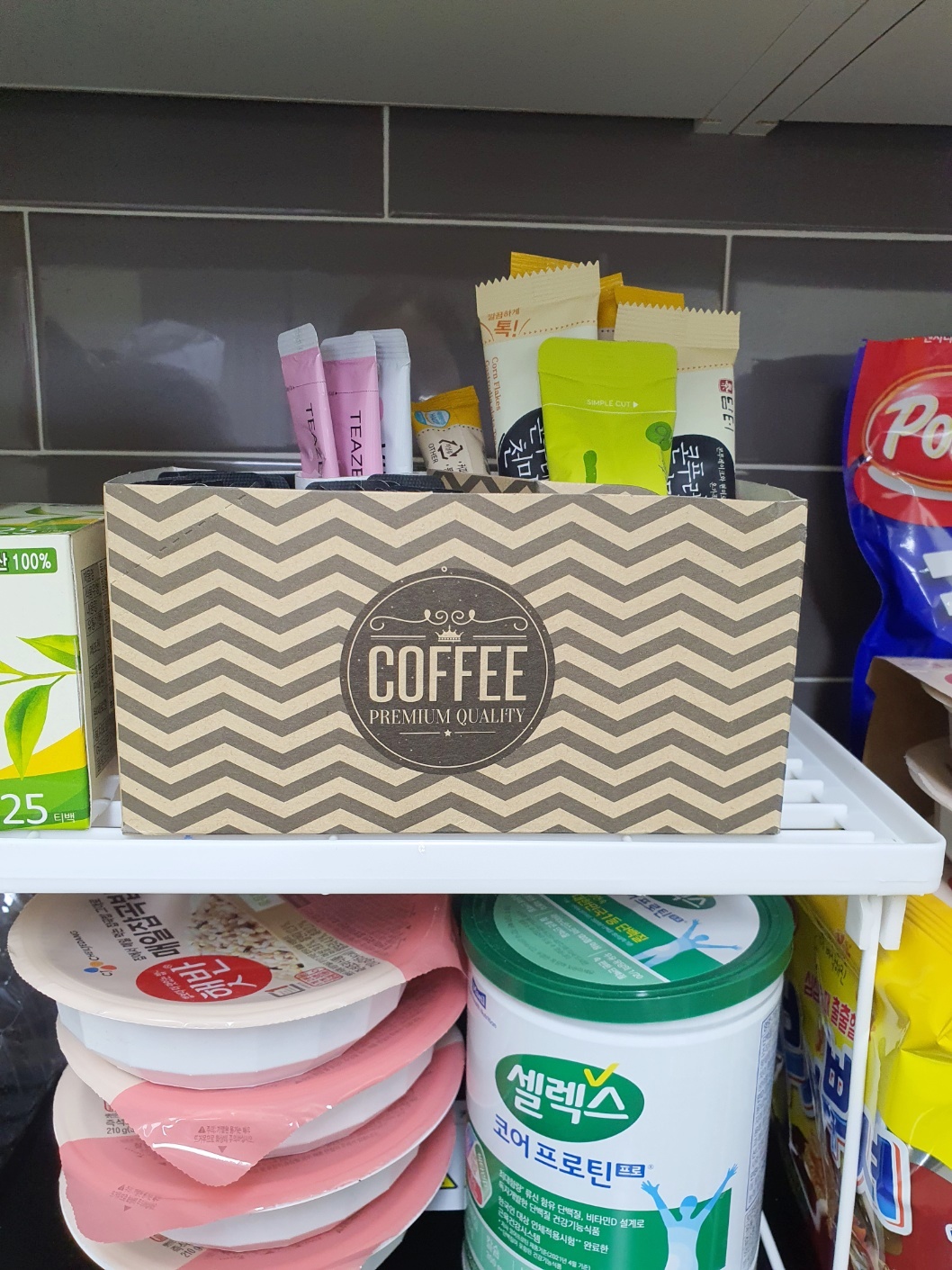 커피 문구까지 적혀 있으니 차 수납에 더 좋네요~^^