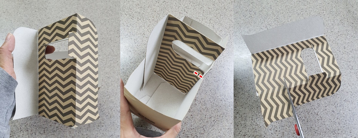 그리고 자른 손잡이를 박스에 넣어