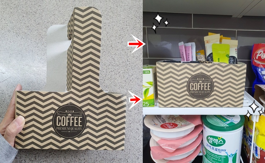 커피 문구까지 적혀 있으니 차 수납에 더 좋네요~^^