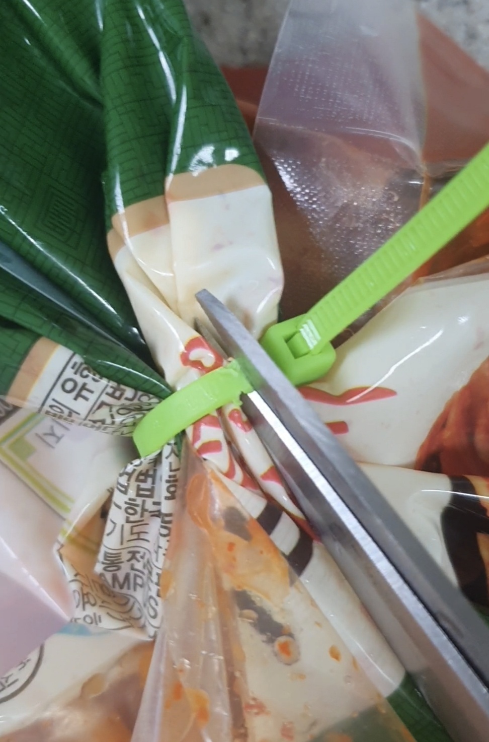 ■ 김치에 묶여 있는 케이블타이 가위로 자른다고요?