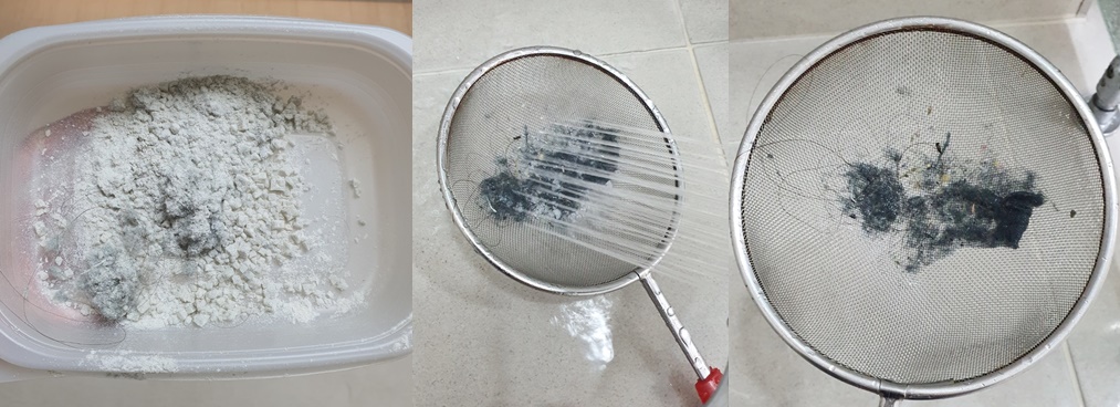 그럼 체망에 남은 먼지만 쓰레기통에 탁탁 털어 버리시면 됩니다.