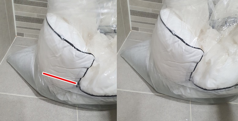 물은 다 채울 필요가 없고 베개 기준 3/1만 채워주세요.