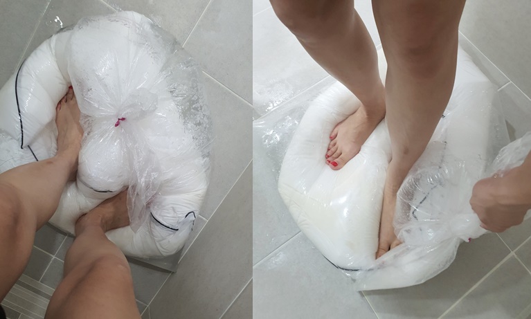 6. 베개에 찌든 때가 빠지도록 밟아 주세요.