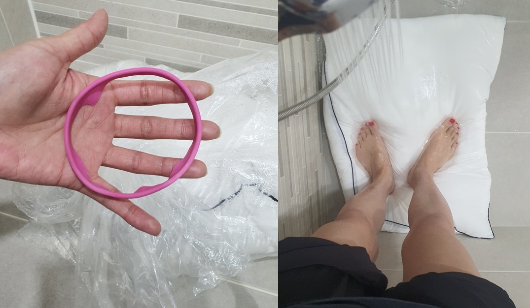 그럼 앞으로 누런 베개 솜 세탁은 김장 비닐에 간편하게 하세요^^